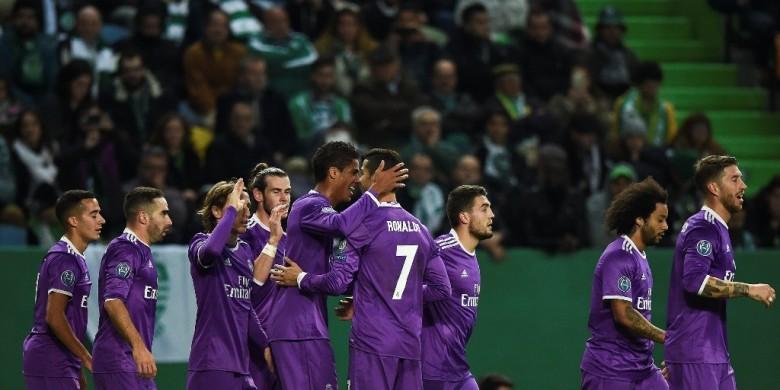 Real Madrid mengunci satu tempat di babak 16 besar setelah sukses mengalahkan Sporting CP 2-1 dalam laga Grup F Liga Champions di Stadion Jose Alvalade, Selasa (22/11/2016).Gol Los Blancos dicetak oleh Raphael Varane (menit ke-29) dan Karim Benzema (87'), sementara lesakan Sporting dibukukan Adrien Silva (80'-penalti).Berdasarkan catatan UEFA, Real Madrid memang tampil lebih mendominasi. Mereka memimpin penguasaan bola hingga 59 persen. Dari segi peluang, Los Blancos memiliki tujuh dan Sporting mempunyai enam kesempatan.Sporting dan Real Madrid sama-sama mengawali pertandingan dengan kesulitan membongkar pertahanan lawan.